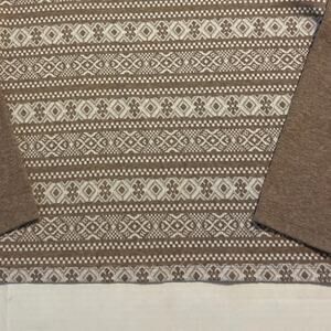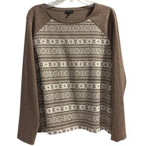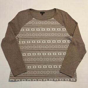 Talbots Heather Brown Long Sleeve Top with Ivory Fair Isle Print on Front