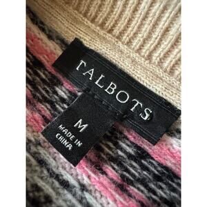 Talbots Fair Isle Cardigan Sweater M Button Up Pink Preppy Nordic Spring