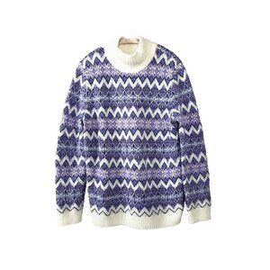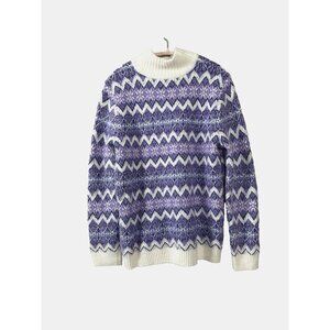 Talbots Fair Isle Knit L Sweater Purple White Cozy Nordic Oversized Cabincore