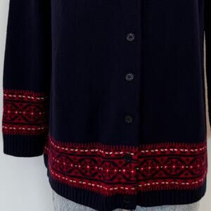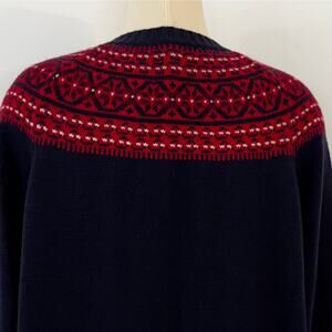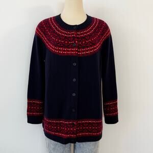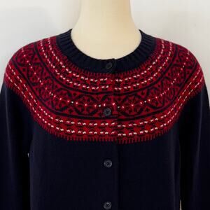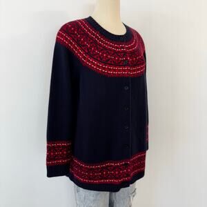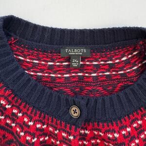Talbots Fair Isle Lambswool Blend Cardigan Sweater Button Down Navy Red 2XP