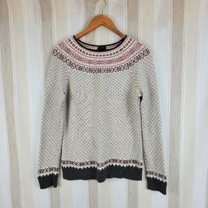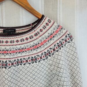 Talbots Fair Isle Lambswool Blend Crewneck Sweater Gray Pink Size Medium