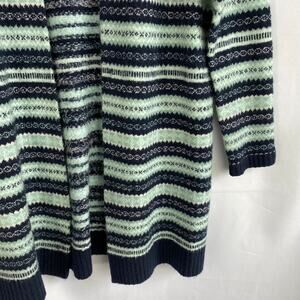 Talbots Fair Isle Long Cardigan Sweater Women S Blue Green Striped Open Front
