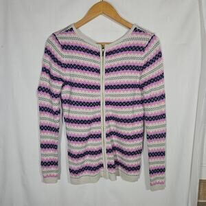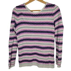 Talbots Fair Isle Medium Zip Back Knit Sweater Striped Nordic Cozy Bright