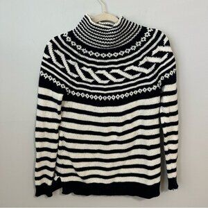 Talbots Fair Isle Navy White Striped Sweater Cowl Neck Chunky Knit Small Petite