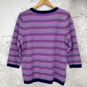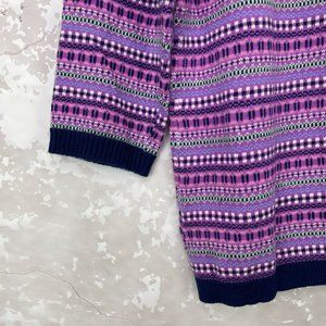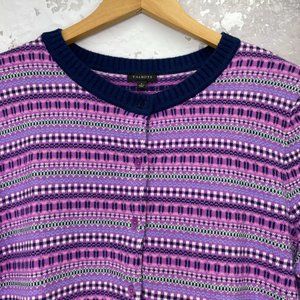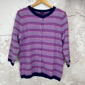 NEW Talbots nylon/lambswool Fair Isle lavender purple and blue button front cardigan in Large is new with tags.