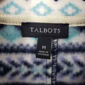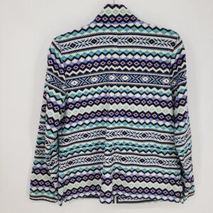 Talbots Fair Isle Print Full Zip Up Fleece Jacket M Womens Teal Blue Purple
