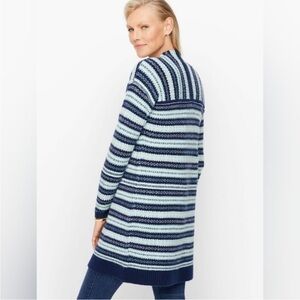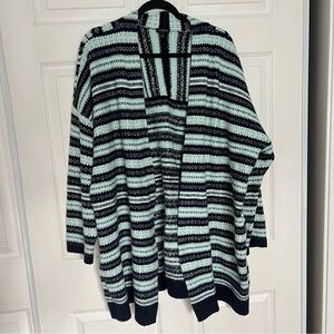 Talbots Fair Isle Striped Knit Cardigan Sweater Blue Open Front Plus Size 3X
