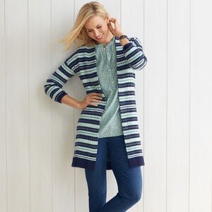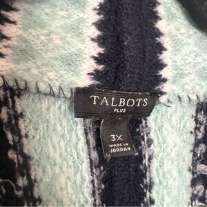 Talbots women’s plus size 3X fair isle striped knit cardigan sweater in blue