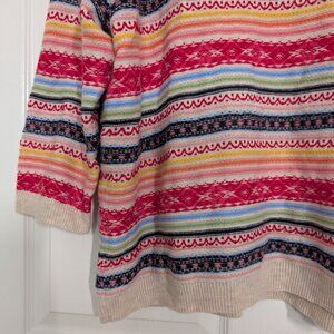 Talbots Womens Nylon Lambswool Beige Colorful Fair Isle Stripe Tunic Sweater Petite Size 2X