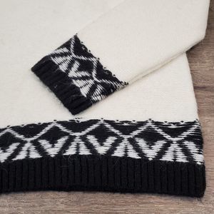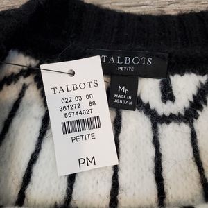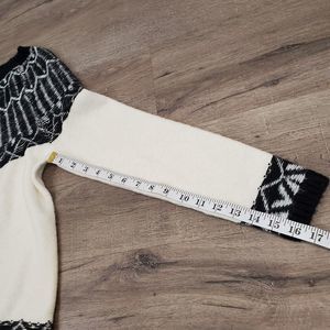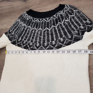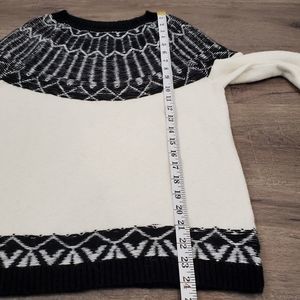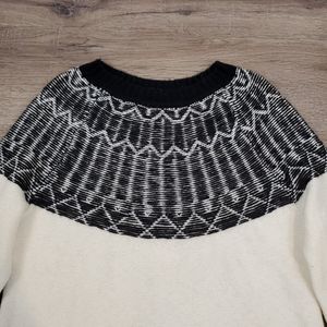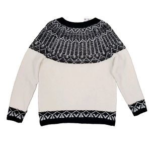 Talbots Fair Isle Wool Blend Crewneck Sweater Sz M Petite Ivory Black