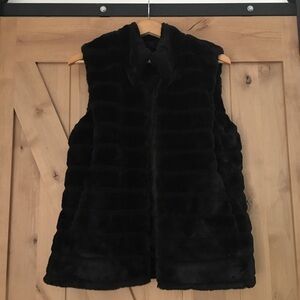 Talbots faux fur open vest in a lovely deep brown color. Size tag says S/M. Fits more like a medium. Pit to pit measurement is approximately 21 inches. Length of vest is approximately 27 inches. Fully lined. Two front pockets. Vest is in great condition. MSRP for a new vest is $129.