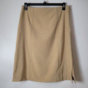 Talbots Faux Suede Beige Stretch Skirt With Subtle Embroidered Detail Side Slit