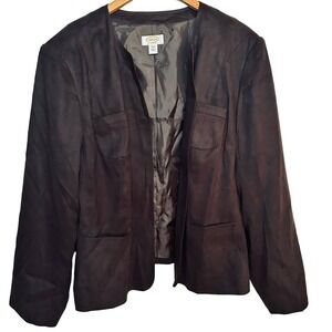 Talbots Faux Suede Jacket 24 24W Black Coat Women's Plus Academia Office Capsule