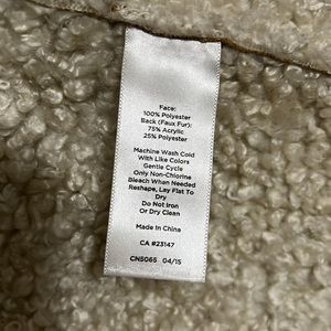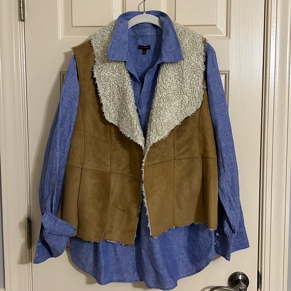 Gently used, in great condition. Faux suede look with lined Sherpa like material. Open front with side pockets. Size: XL
