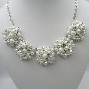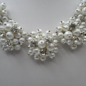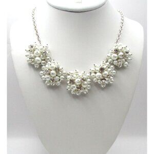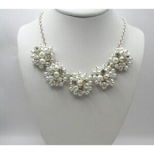 Talbots Faux White Pearls Prong Rhinestones Cluster Floral Necklace New in Box