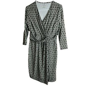 Talbots Faux Wrap Dress Black White Geometric Print Size MP Petite Knee Length