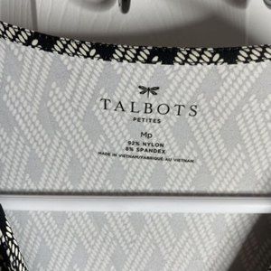 Talbots Faux Wrap Dress Black White Geometric Print Size MP Petite. Lightly used- no visible flaws or defects.