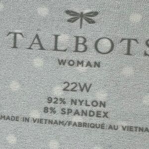 Talbots Faux Wrap Dress Sz 22W 3X Polka Dot Navy Blue V-Neck Slimming Stretch