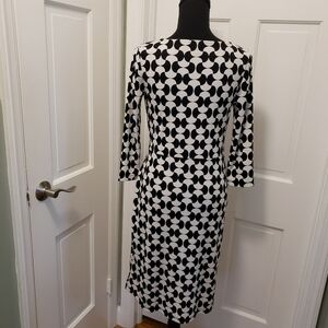 Talbots Faux Wrap Sheath Dress Stretch Black & White Petite S