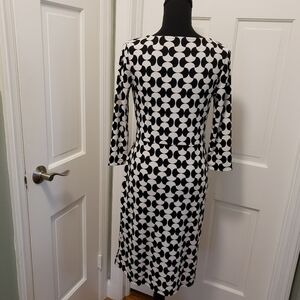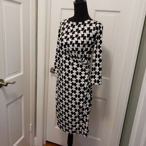 Talbots Faux Wrap Sheath Dress Stretch Black & White Petite S