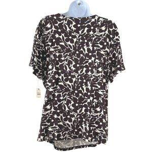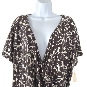 Talbots Faux Wrap Top 2X Petite Floral Brown Short Sleeve Stretch NWT TP-2959