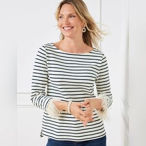 Talbots Feather Cuff Bateau Neck Tee