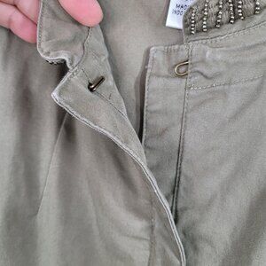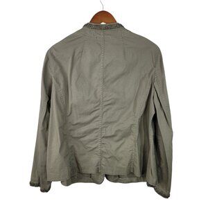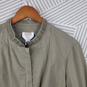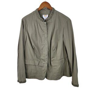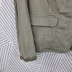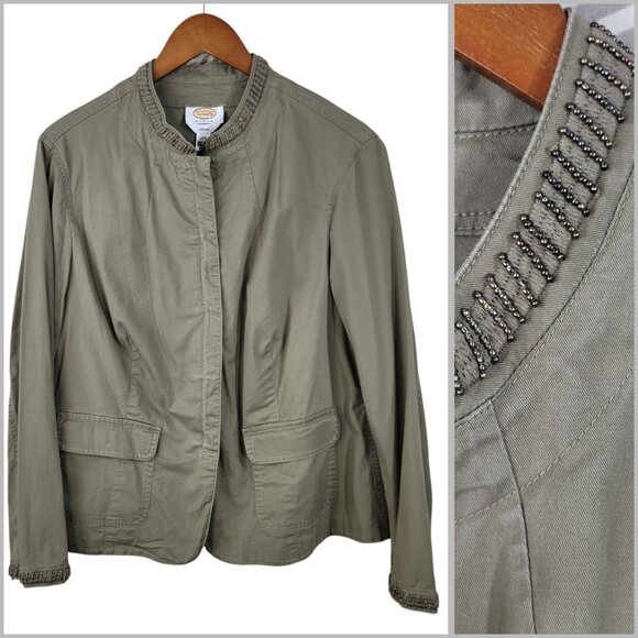 Talbots Feild Jacket Size 14W Beaded Trim Casual Canvas Green Beige Pockets
