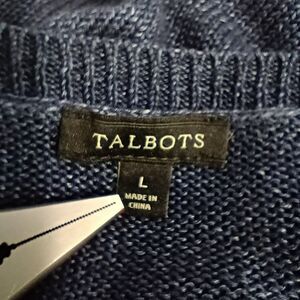 🌟 Style Keywords: Talbots linen sweater, boat neck pullover, coastal chic, preppy knitwear, open knit layering top, dark blue summer sweater, women’s L