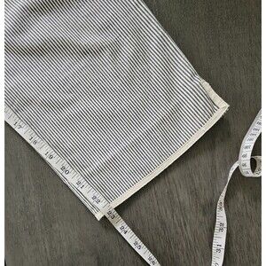 The Talbots Fine Striped Cropped Stretch Pants in Size 4 offer a classic and stylish option for women looking for a comfortable and versatile piece. Made from a blend of cotton and rayon, these pants feature a flattering mid-rise fit with a tapered leg style, perfect for a casual occasion. The blue and ivory striped pattern adds a touch of coastal charm, while the side zip closure ensures a secure fit. Material has texture, almost like a fine corduroy but lightweight. Easy to care for with machine washable fabric, these pants are a great addition to any wardrobe for the summer and spring seasons. Cute ankle accent as shown. See pictures for measurements.