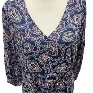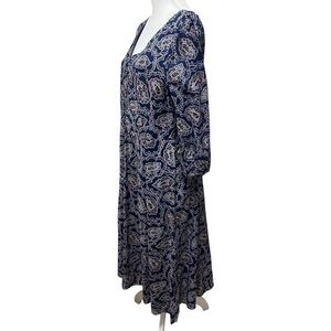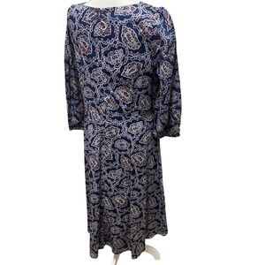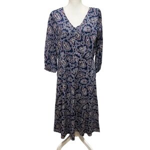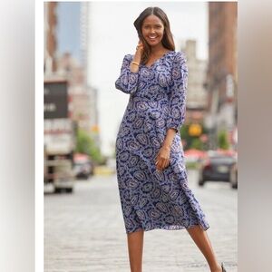 Talbots Fit & Flare Paisley 3/4 Puff Sleeve V-Neck Midi Dress Women’s Sz 14 NWT