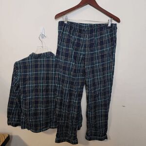 Talbots Flannel Cotton Button Down long sleeve plaid top and Pajama Set Women's