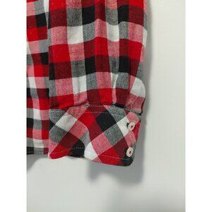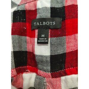 The Talbots flannel button up blouse is a cozy and stylish addition to any woman's wardrobe. Made from a blend of cotton blend, this red and white plaid blouse features a gold metallic shimmer thats adds a holiday flair that is perfect for the winter and fall seasons. Ideal for casual occasions but can be dressed up or down for any holiday themed event. Chest measures 42" length 28.5". Great condition.