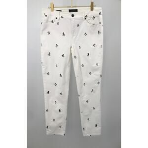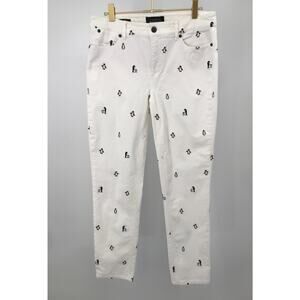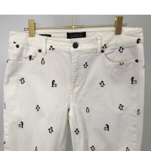 Talbots Flawless Five Pocket Pants White Embroidered Penguin Corduroy