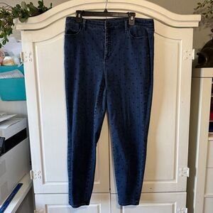 Features: Raised Flocked Dot pattern all over on jeans. While they are labeled "jegging", they actually have fully functional pockets like jeans. As such, I wouldn't call these jeggings.
