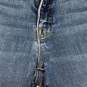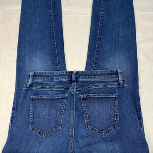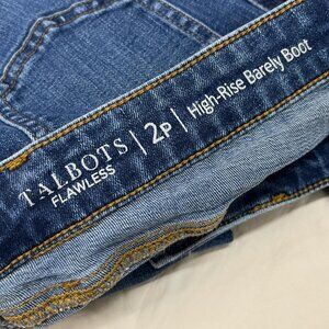 Preloved women's size 2P high-rise barely boot jeans from Talbots' Flawless collection. These jeans are made from a comfortable and stretchy blend of 93% cotton, 6% polyester, and 1% spandex. The high-rise waist and subtle bootcut create a flattering silhouette. Measurements: 14" waist, 8.5" rise, and 28.5" inseam. inv: 0209.