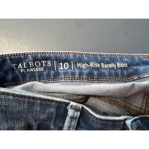 These Talbots Flawless jeans feature a high-rise barely boot cut design, offering both style and comfort. Made from a cotton blend, they provide a classic look with a modern fit.