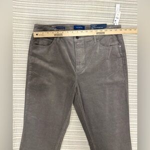 The Talbots Flawless High-Waisted Straight Leg Slimming Panel Gray Pants in size 16P are versatile and stylish trousers perfect for various occasions such as travel, casual outings, dressy events, workwear, and business meetings. These machine washable pants feature a flattering straight leg design and are made from a blend of spandex and cotton, providing a comfortable and stretchy fit. The corduroy fabric in a classic gray color gives these pants a chic and sophisticated look, making them a standout wardrobe essential for women.