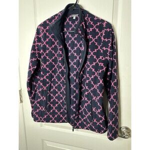 Talbots Fleece Jacket Pink & Navy Women’s Size Medium, Soft With Zip Pockets