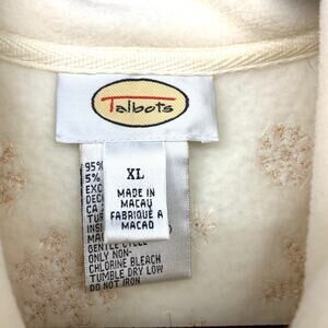 Talbots Fleece Jacket Womens XL Cream Embroidered Snowflake Full Zip Winter Cozy