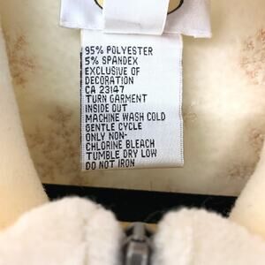 Cozy and festive Talbots fleece jacket in a soft cream color featuring metallic and tonal embroidered snowflakes throughout. Full-zip front with a snowflake zipper pull, long sleeves, and stand collar. Warm, plush, and perfect for winter, holidays, and everyday wear. Made of a soft polyester-spandex blend with decorative embroidery. 95% Polyester, 5% Spandex (Exclusive of decoration)