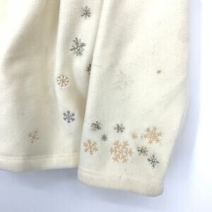 Talbots Fleece Jacket Womens XL Cream Embroidered Snowflakes Full Zip Winter Cozy