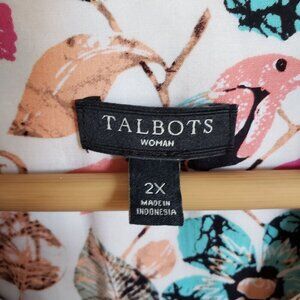 Talbots Floral Bird Button Front Tunic Top Roll Tab Sleeves Multi Size Womens 2X