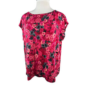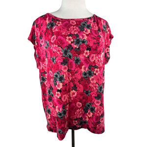 Talbots Floral Cap Sleeve Top Stretchy Knit Scoop Neck 3Xp Plus Size 3X Petite