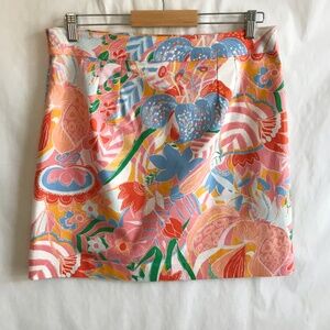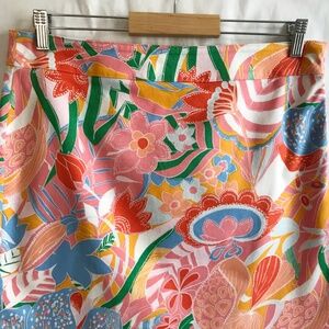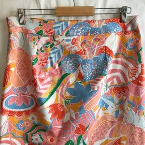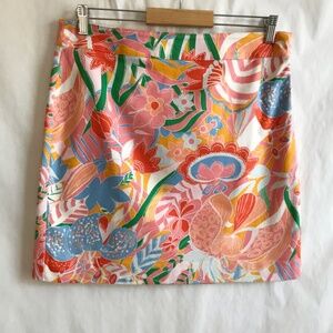 Talbot's Floral Cotton Stretch A-Line Skirt 10p Colorful Fully Lined Side Zip
