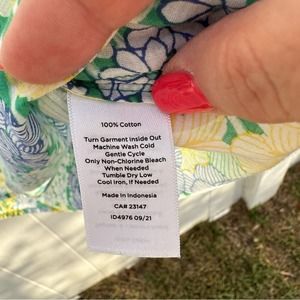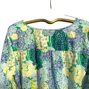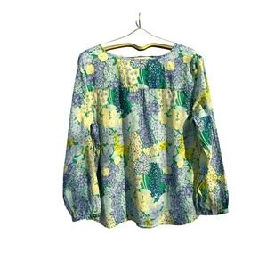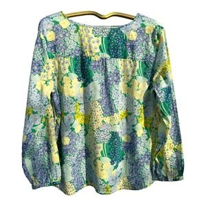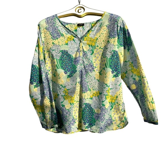 Talbots - Floral Cotton Tunic, Blue Green Yellow, Long Sleeve, SizeXL