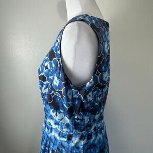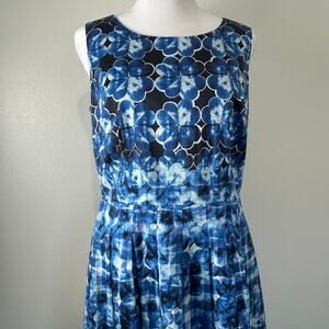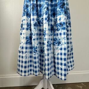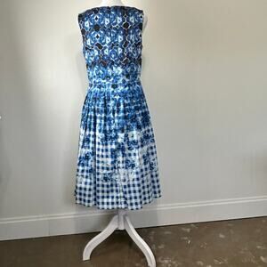 Talbots Blue Floral Dress With Gingham Check Detail, Sleeveless with Pockets, zips up back, Fully lined. No Stretch.