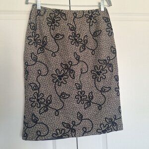 💙 Talbots Floral Embroidered Wool Pencil Skirt Size 8 Fall Warm Classy Preppy