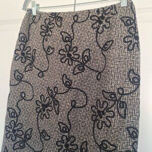 💙 Talbots Floral Embroidered Wool Pencil Skirt Fall Warm Classy Preppy.
