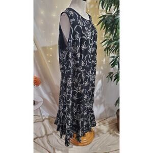 Talbots Floral Flouce Ruffle Sleeveless Midi Dress Plus Size 18W Black Wedding