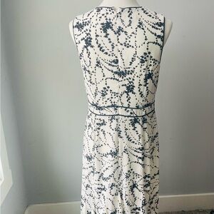 This elegant A-line dress by Talbots is perfect for a wedding guest or cocktail event. Featuring a sleeveless design and a classic crew neck, the dress showcases a sophisticated black and white color palette. Its flowing silhouette adds a touch of timeless style to any special occasion.